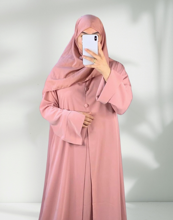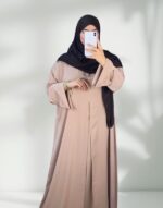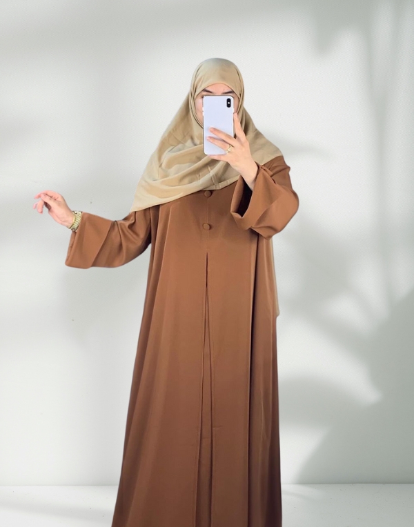 The Aqwaan Abaya is the epitome of grace and sophistication, offering the elegance of a two-piece look with the convenience of a single, seamless design. Crafted from premium Crep Rosa fabric, it features an open-front style with double-layered fabric, enhancing its structured and graceful appearance. With its smooth drape and flowing silhouette, this abaya is ideal for any occasion, whether you're attending a formal event or simply looking for a refined everyday style.