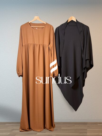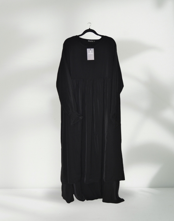 The Hamasat Set is a modern expression of modest elegance, featuring an open-sided abaya that flows gracefully from both the right and left sides. It comes paired with a matching under abaya for added coverage and style. Crafted from high-quality Crep Rosa fabric, this set is lightweight, breathable, and effortlessly chic. Its fluid drape and wrinkle-resistant qualities make it a luxurious yet practical choice — ideal for both everyday wear and special occasions.